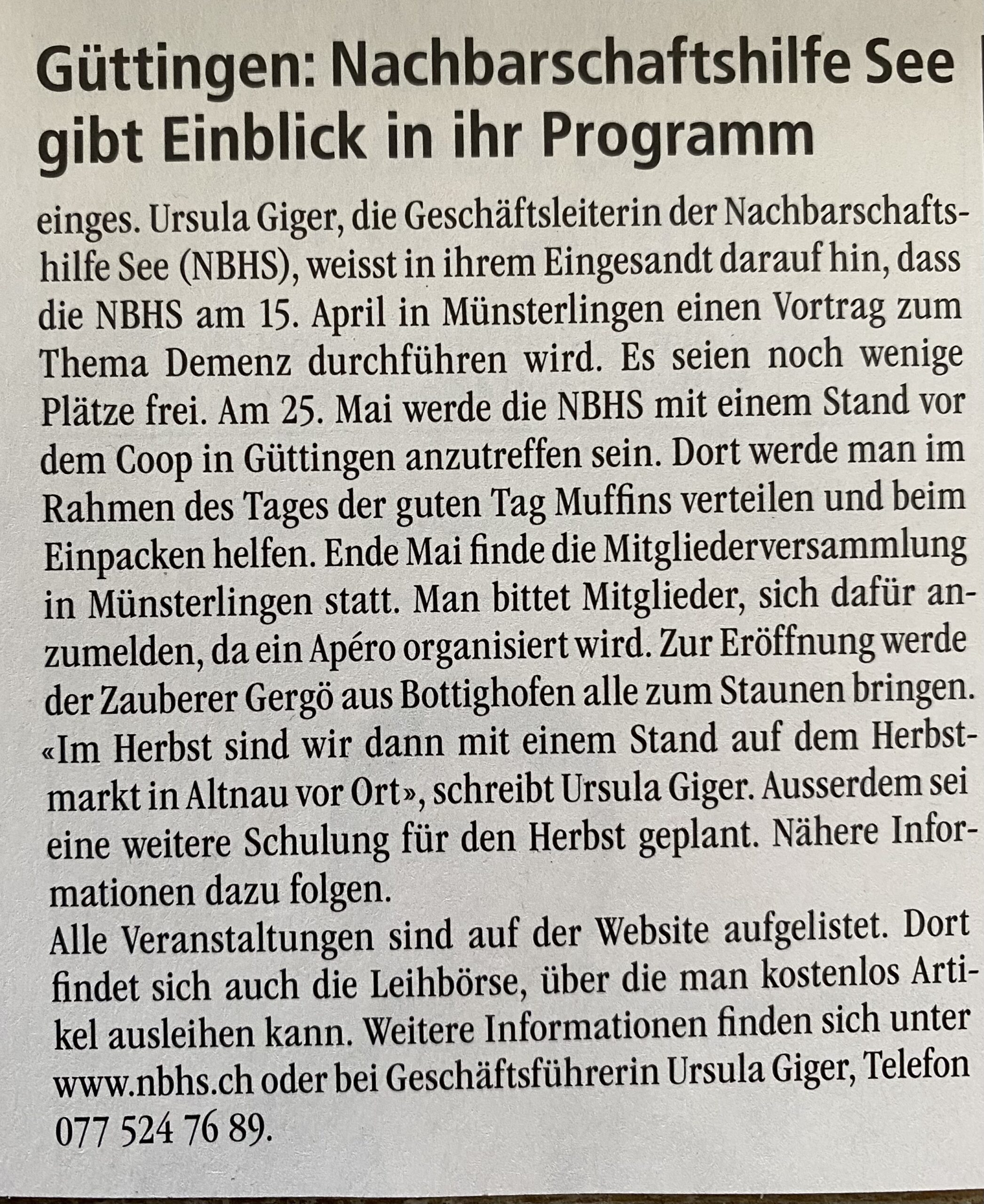 Bericht Projekt Nachbarschaftshilfe See