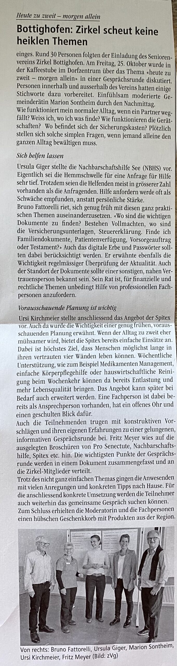 Zirkel Bottighofen: Heute zu zweit – morgen allein