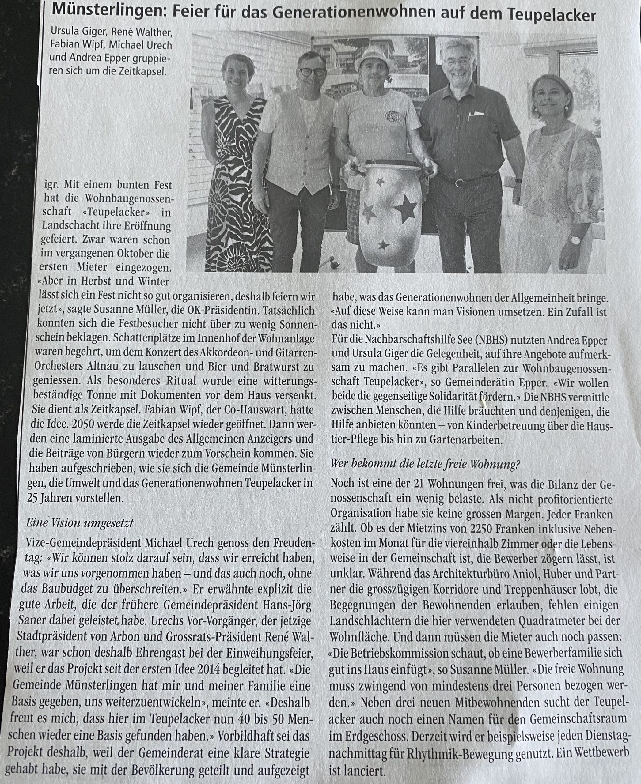 Eröffnung Wohnbaugenossenschaft Teupelacker in Landschlacht