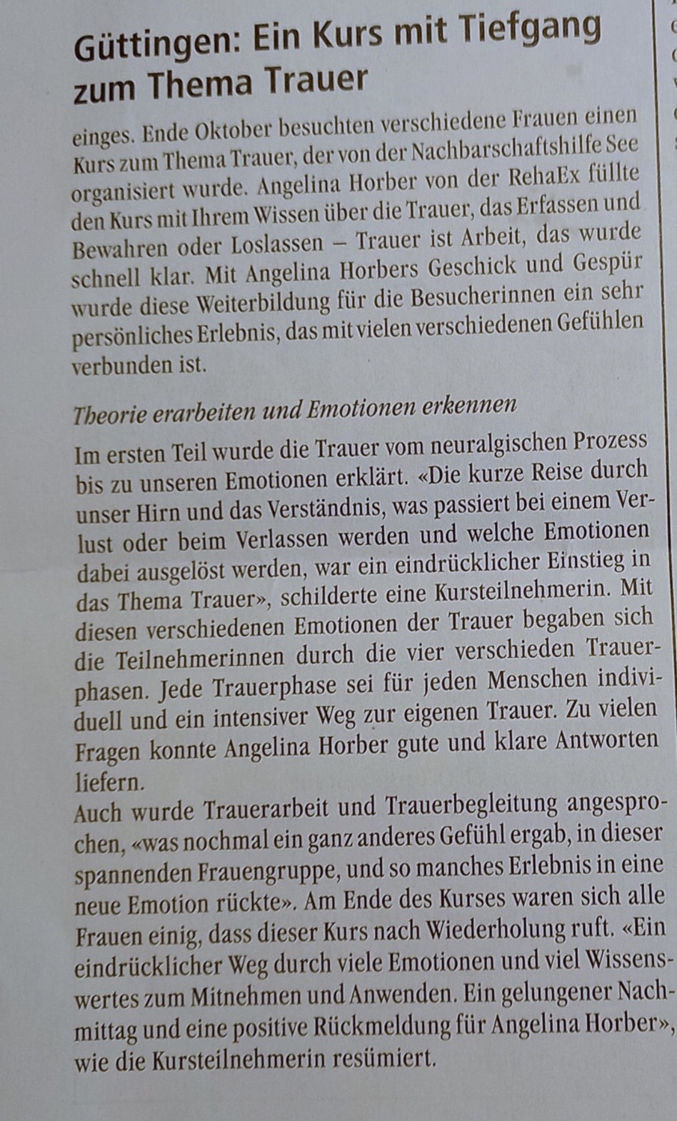 Güttingen: Ein Kurs mit Tiefgang zum Thema Trauer
